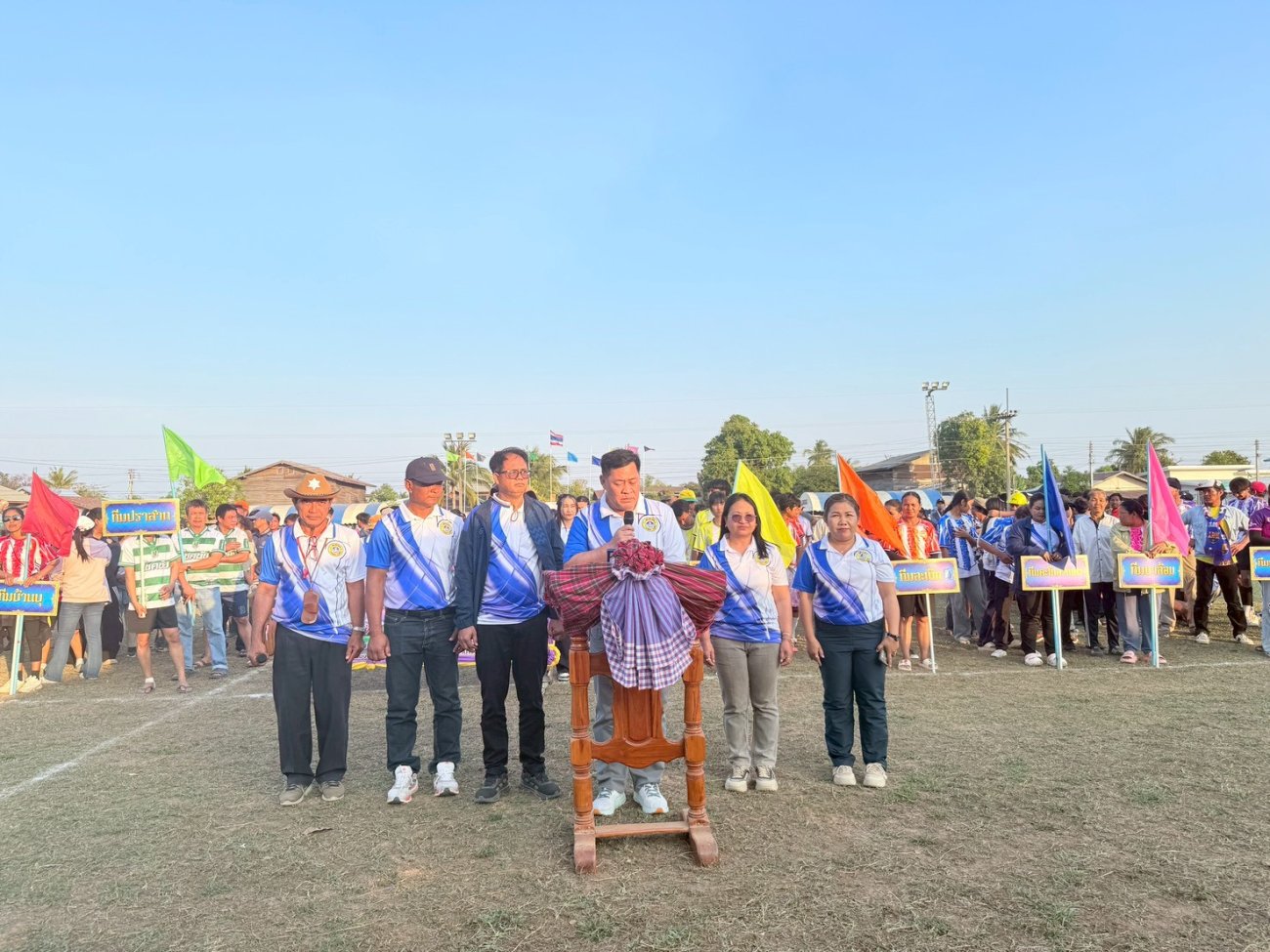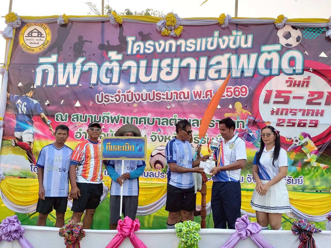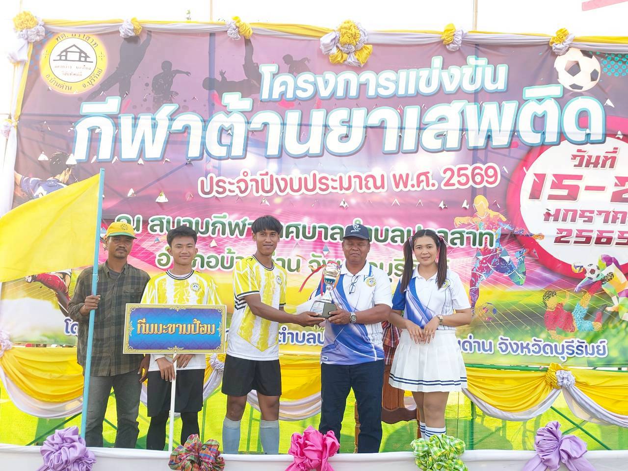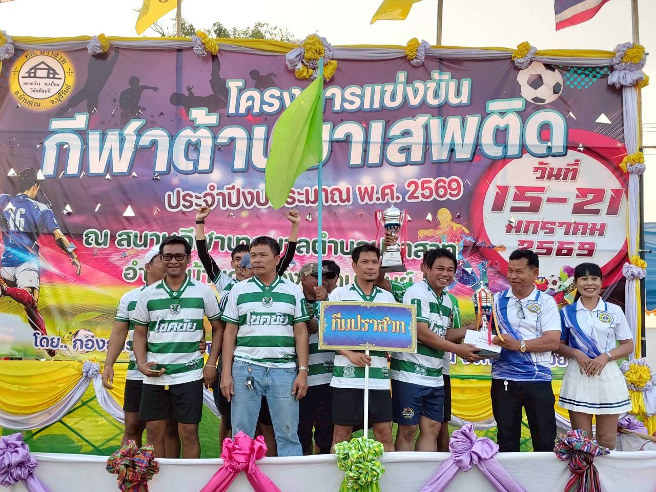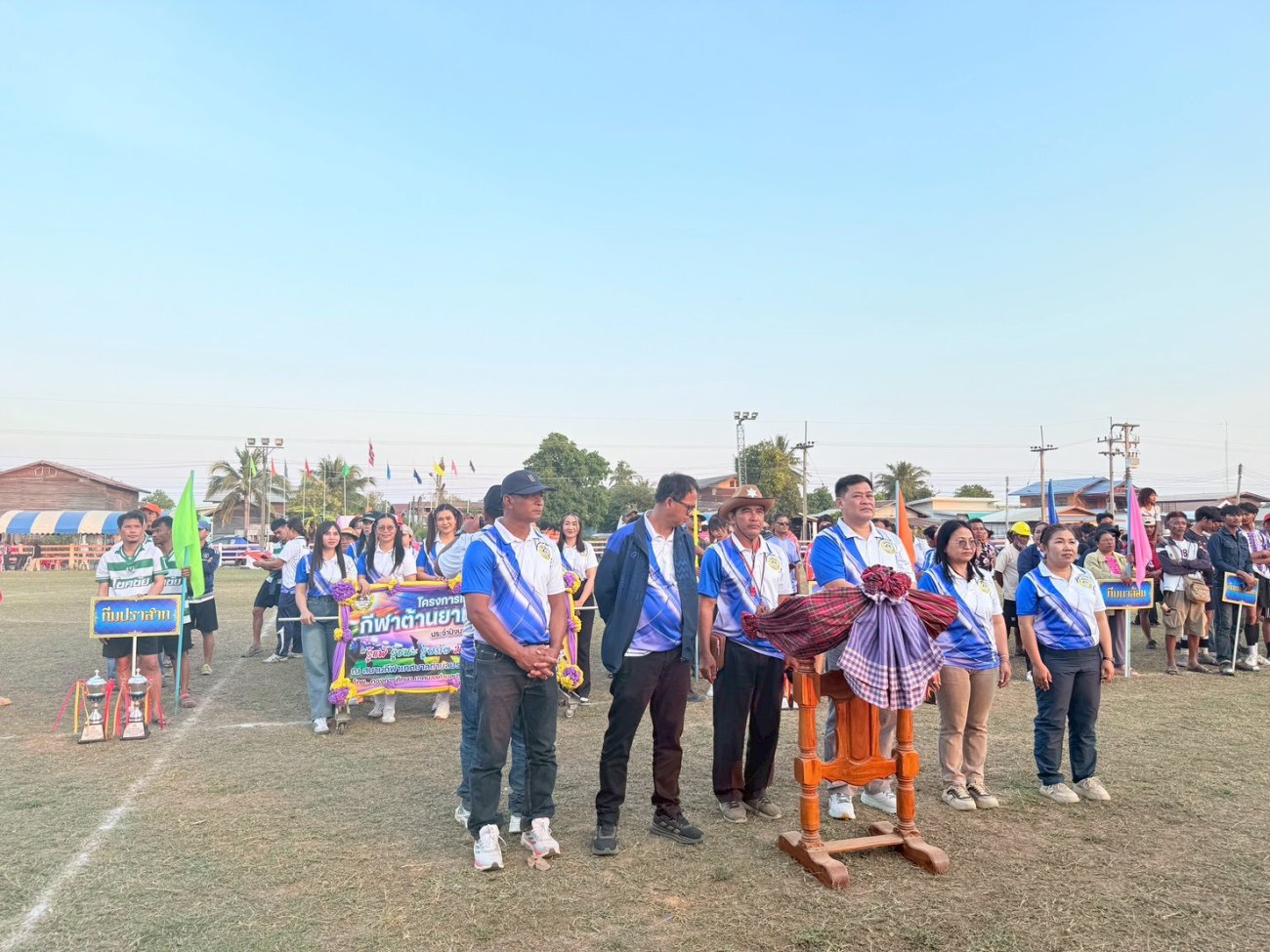 ภาพที่เกี่ยวข้อง เมื่อวันที่ 21 มกราคม พ.ศ.2569 นายพนาพัฒน์ ชะลุนรัมย์ นายกเทศมนตรีตำบลปราสาท ประธานจัดการแข่งขันกีฬาต้านยาเสพติดตำบลปราสาท ได้กล่าวรายงานผลการดำเนินการจัดโครงการแข่งขันกีฬาต้านยาเสพติด โดย นายกิตติวัฒน์ ปิติเรืองสิทธิ์ รองปลัดเทศบาล ปฏิบัติราชการแทน ปลัดเทศบาลตำบลปราสาท พร้อมด้วยคณะผู้บริหาร สมาชิกสภาเทศบาล หัวหน้าส่วนราชการ พนักงานเทศบาลตำบลปราสาท กำนัน ผู้ใหญ่บ้าน ทั้ง 18 หมู่บ้าน และนักกีฬาตำบลปราสาท ให้เกียรติร่วมพิธีปิด "โครงการแข่งขันกีฬาต้านยาเสพติดตำบลปราสาท ประจำปีงบประมาณ 2569 ในการแข่งขันกีฬาต้านยาเสพติดตำบลปราสาท ประจำปีงบประมาณ 2569 นี้ ในระหว่างวันที่ 15-21 มกราคม 2569 ณ สนามกีฬาเทศบาลตำบลปราสาท อำเภอบ้านด่าน จังหวัดบุรีรัมย์ ซึ่งได้ดำเนินการจัดการแข่งขันเสร็จสิ้นเป็นที่เรียบร้อย และเป็นไปตามวัตถุประประสงค์ทุกประการ