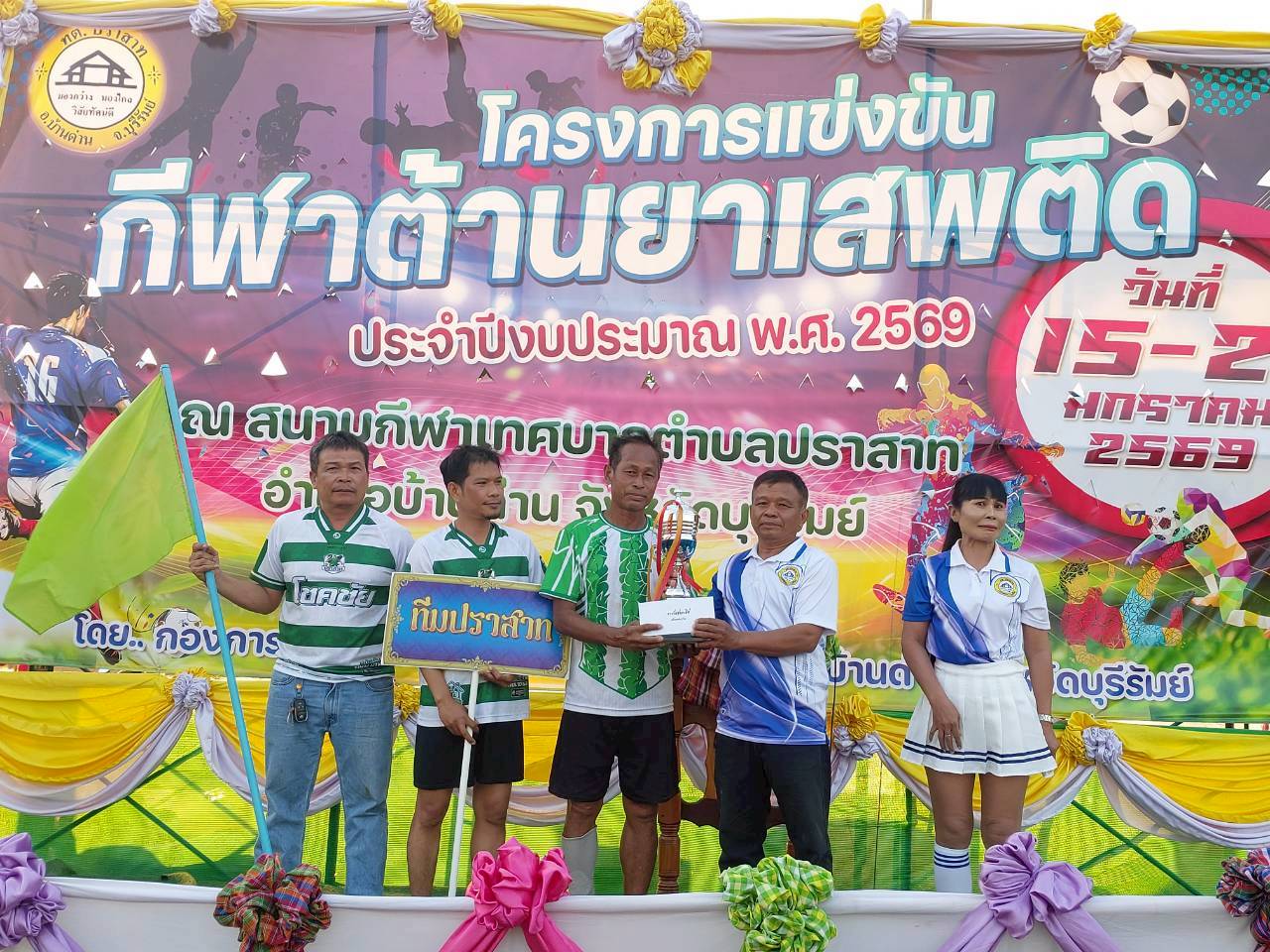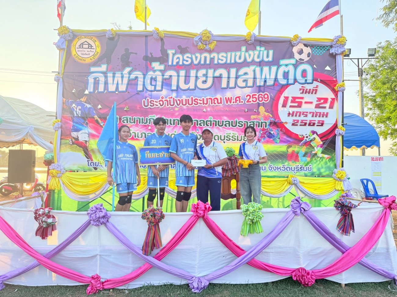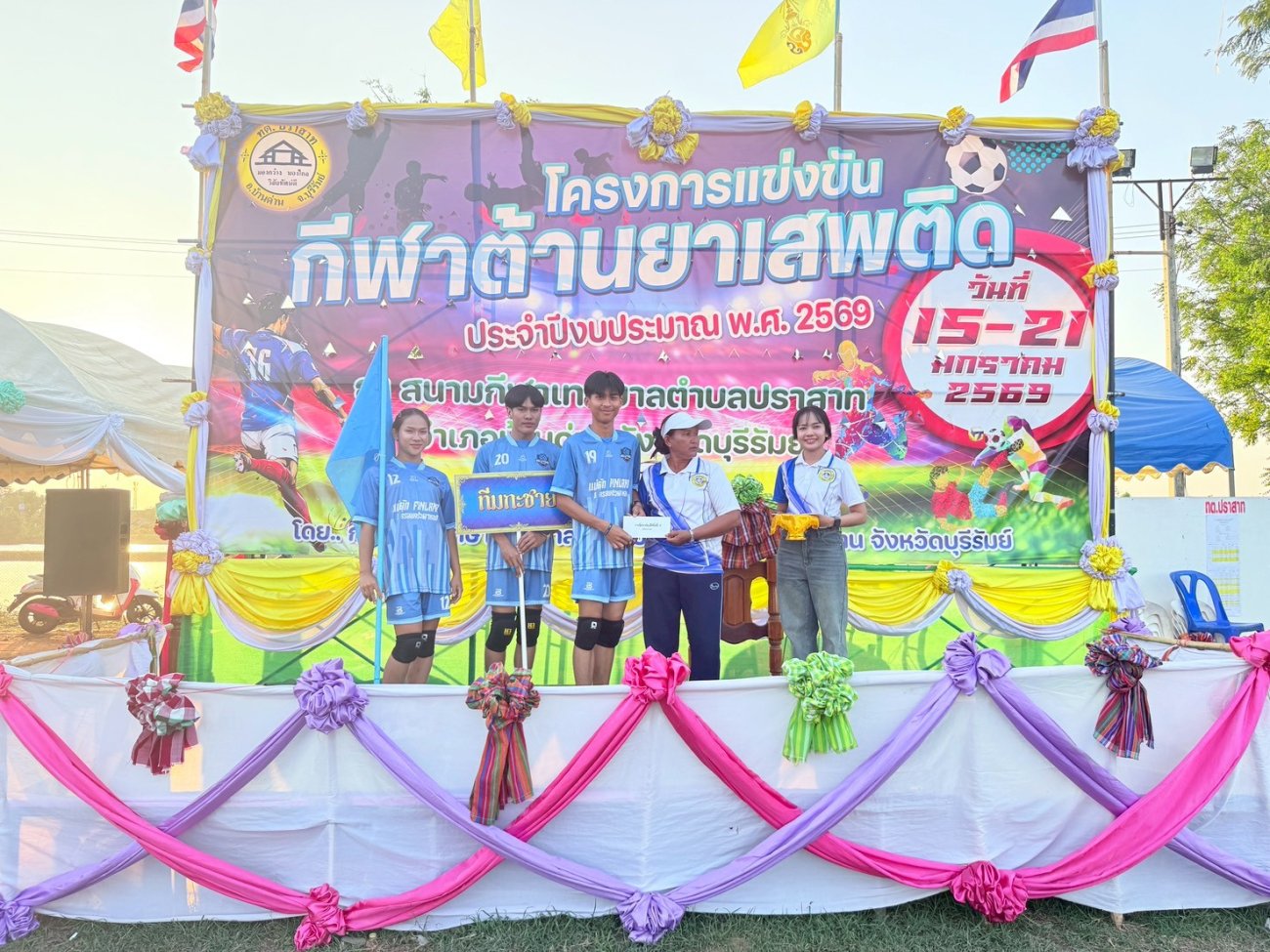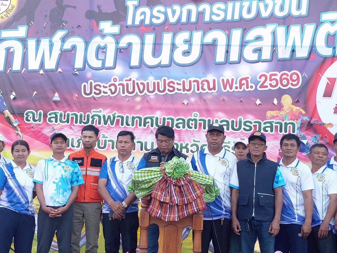 เมื่อวันที่ 21 มกราคม พ.ศ.2569 นายพนาพัฒน์ ชะลุนรัมย์ นายกเทศมนตรีตำบลปราสาท ประธานจัดการแข่งขันกีฬาต้านยาเสพติดตำบลปราสาท ได้กล่าวรายงานผลการดำเนินการจัดโครงการแข่งขันกีฬาต้านยาเสพติด โดย นายกิตติวัฒน์ ปิติเรืองสิทธิ์ รองปลัดเทศบาล ปฏิบัติราชการแทน ปลัดเทศบาลตำบลปราสาท พร้อมด้วยคณะผู้บริหาร สมาชิกสภาเทศบาล หัวหน้าส่วนราชการ พนักงานเทศบาลตำบลปราสาท กำนัน ผู้ใหญ่บ้าน ทั้ง 18 หมู่บ้าน และนักกีฬาตำบลปราสาท ให้เกียรติร่วมพิธีปิด "โครงการแข่งขันกีฬาต้านยาเสพติดตำบลปราสาท ประจำปีงบประมาณ 2569 ในการแข่งขันกีฬาต้านยาเสพติดตำบลปราสาท ประจำปีงบประมาณ 2569 นี้ ในระหว่างวันที่ 15-21 มกราคม 2569 ณ สนามกีฬาเทศบาลตำบลปราสาท อำเภอบ้านด่าน จังหวัดบุรีรัมย์ ซึ่งได้ดำเนินการจัดการแข่งขันเสร็จสิ้นเป็นที่เรียบร้อย และเป็นไปตามวัตถุประประสงค์ทุกประการ