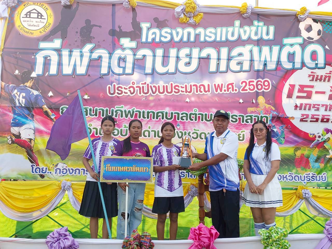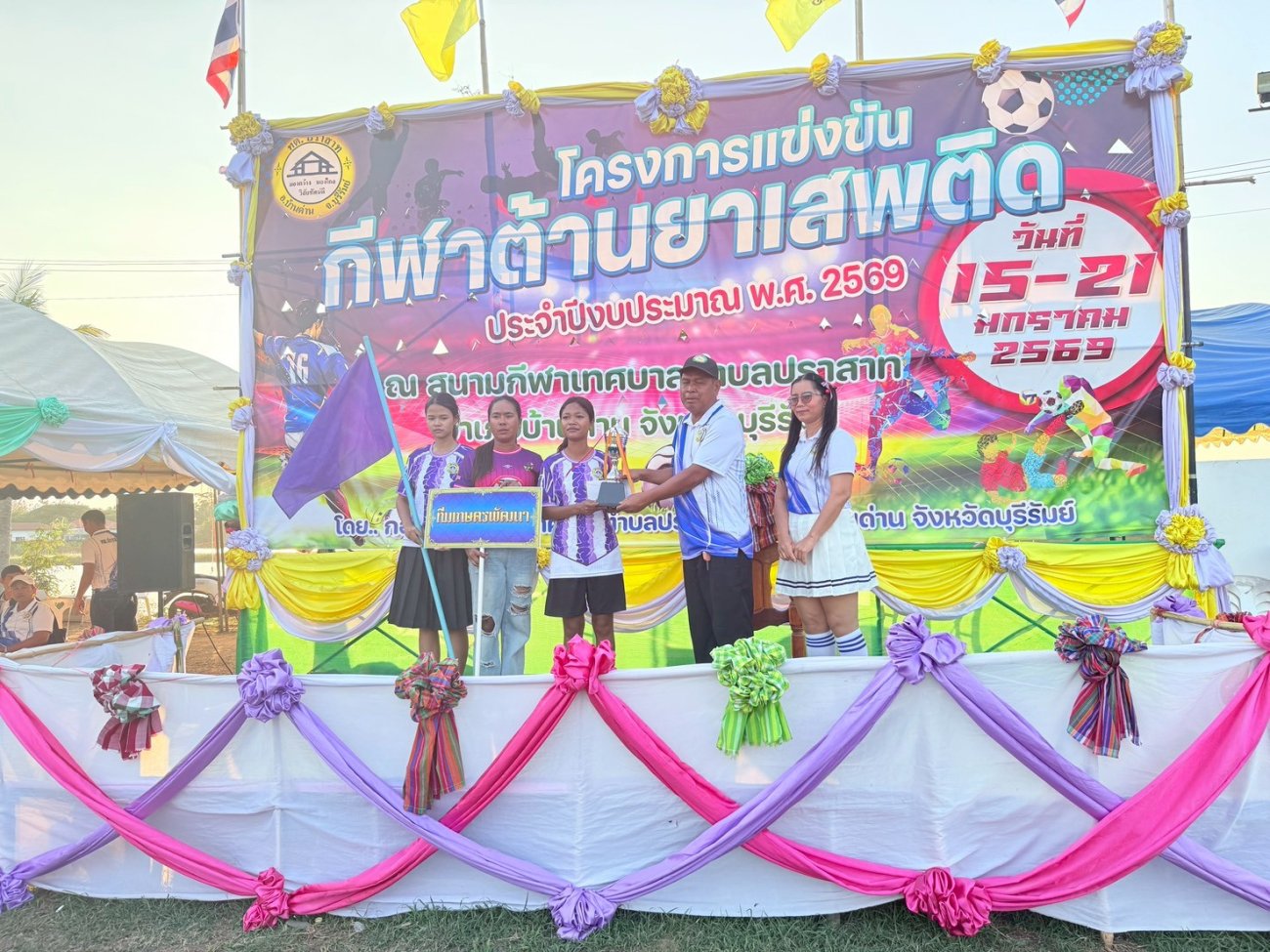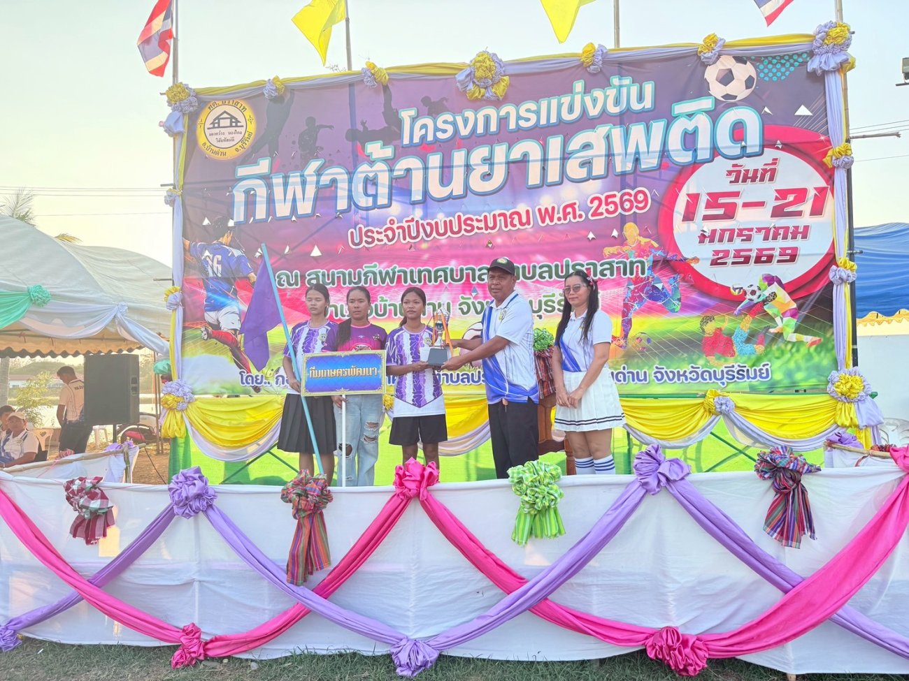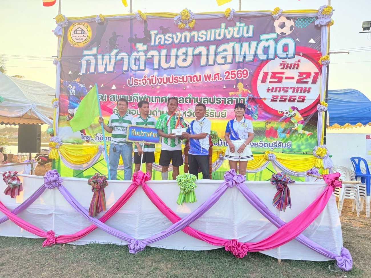 เมื่อวันที่ 21 มกราคม พ.ศ.2569 นายพนาพัฒน์ ชะลุนรัมย์ นายกเทศมนตรีตำบลปราสาท ประธานจัดการแข่งขันกีฬาต้านยาเสพติดตำบลปราสาท ได้กล่าวรายงานผลการดำเนินการจัดโครงการแข่งขันกีฬาต้านยาเสพติด โดย นายกิตติวัฒน์ ปิติเรืองสิทธิ์ รองปลัดเทศบาล ปฏิบัติราชการแทน ปลัดเทศบาลตำบลปราสาท พร้อมด้วยคณะผู้บริหาร สมาชิกสภาเทศบาล หัวหน้าส่วนราชการ พนักงานเทศบาลตำบลปราสาท กำนัน ผู้ใหญ่บ้าน ทั้ง 18 หมู่บ้าน และนักกีฬาตำบลปราสาท ให้เกียรติร่วมพิธีปิด "โครงการแข่งขันกีฬาต้านยาเสพติดตำบลปราสาท ประจำปีงบประมาณ 2569 ในการแข่งขันกีฬาต้านยาเสพติดตำบลปราสาท ประจำปีงบประมาณ 2569 นี้ ในระหว่างวันที่ 15-21 มกราคม 2569 ณ สนามกีฬาเทศบาลตำบลปราสาท อำเภอบ้านด่าน จังหวัดบุรีรัมย์ ซึ่งได้ดำเนินการจัดการแข่งขันเสร็จสิ้นเป็นที่เรียบร้อย และเป็นไปตามวัตถุประประสงค์ทุกประการ