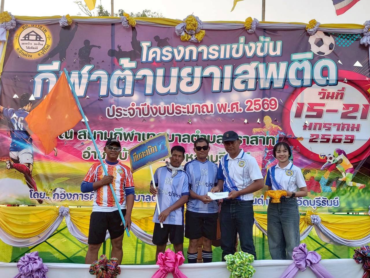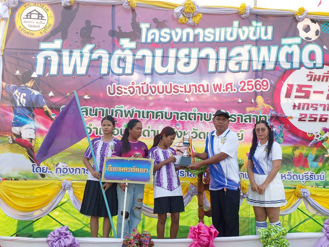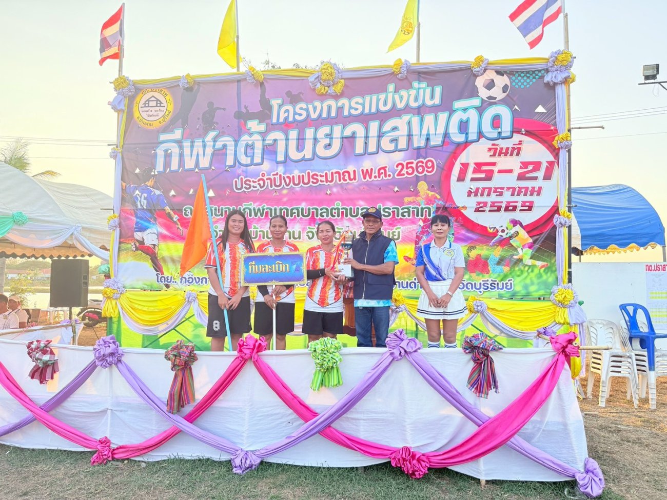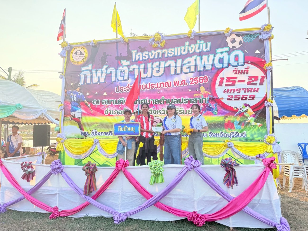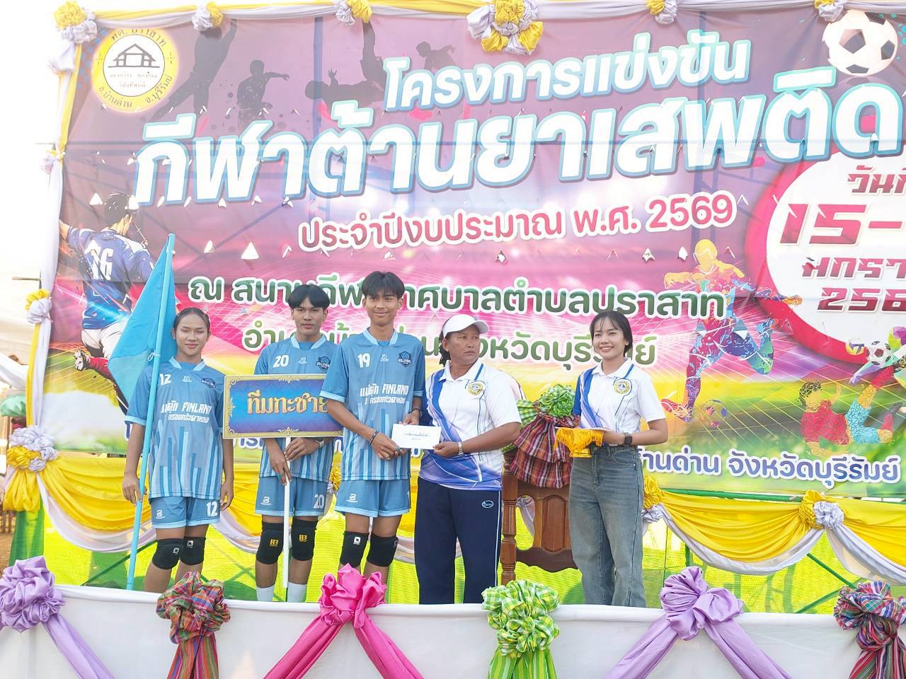 เมื่อวันที่ 21 มกราคม พ.ศ.2569 นายพนาพัฒน์ ชะลุนรัมย์ นายกเทศมนตรีตำบลปราสาท ประธานจัดการแข่งขันกีฬาต้านยาเสพติดตำบลปราสาท ได้กล่าวรายงานผลการดำเนินการจัดโครงการแข่งขันกีฬาต้านยาเสพติด โดย นายกิตติวัฒน์ ปิติเรืองสิทธิ์ รองปลัดเทศบาล ปฏิบัติราชการแทน ปลัดเทศบาลตำบลปราสาท พร้อมด้วยคณะผู้บริหาร สมาชิกสภาเทศบาล หัวหน้าส่วนราชการ พนักงานเทศบาลตำบลปราสาท กำนัน ผู้ใหญ่บ้าน ทั้ง 18 หมู่บ้าน และนักกีฬาตำบลปราสาท ให้เกียรติร่วมพิธีปิด "โครงการแข่งขันกีฬาต้านยาเสพติดตำบลปราสาท ประจำปีงบประมาณ 2569 ในการแข่งขันกีฬาต้านยาเสพติดตำบลปราสาท ประจำปีงบประมาณ 2569 นี้ ในระหว่างวันที่ 15-21 มกราคม 2569 ณ สนามกีฬาเทศบาลตำบลปราสาท อำเภอบ้านด่าน จังหวัดบุรีรัมย์ ซึ่งได้ดำเนินการจัดการแข่งขันเสร็จสิ้นเป็นที่เรียบร้อย และเป็นไปตามวัตถุประประสงค์ทุกประการ