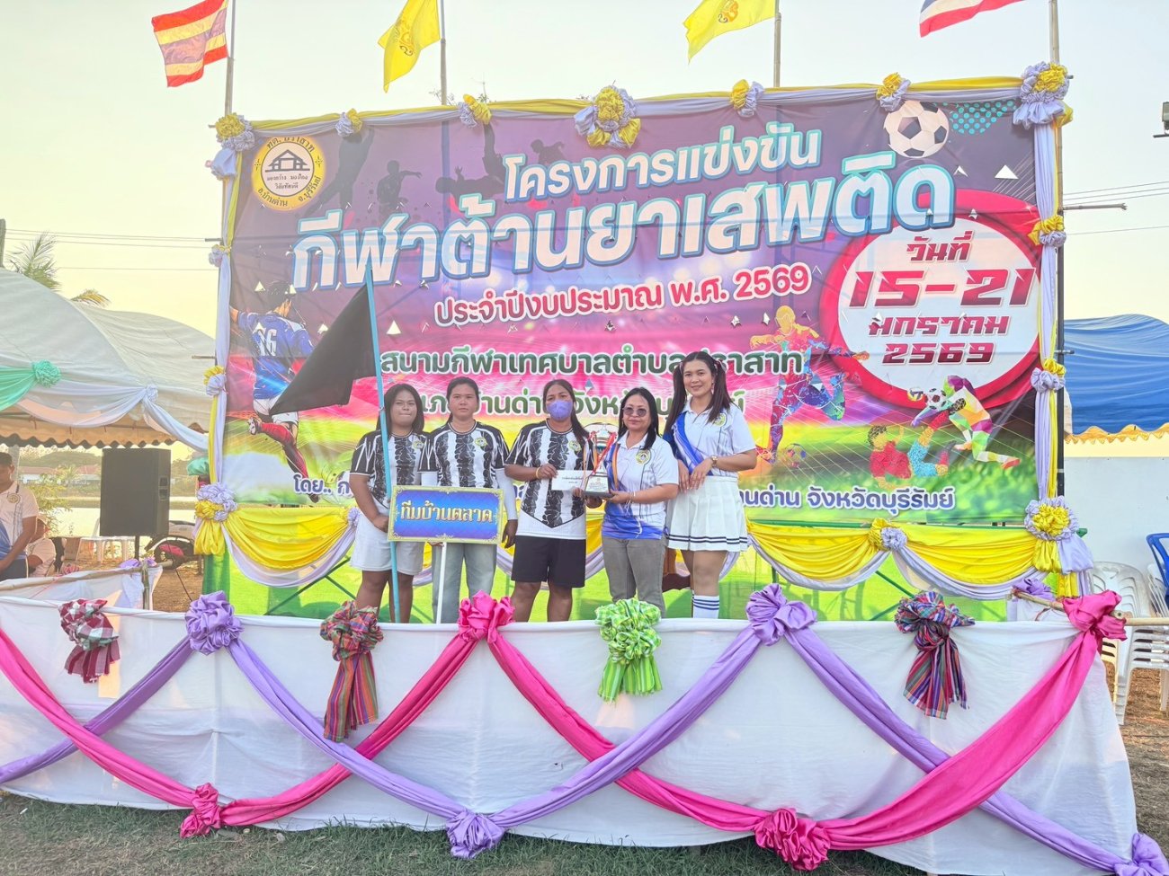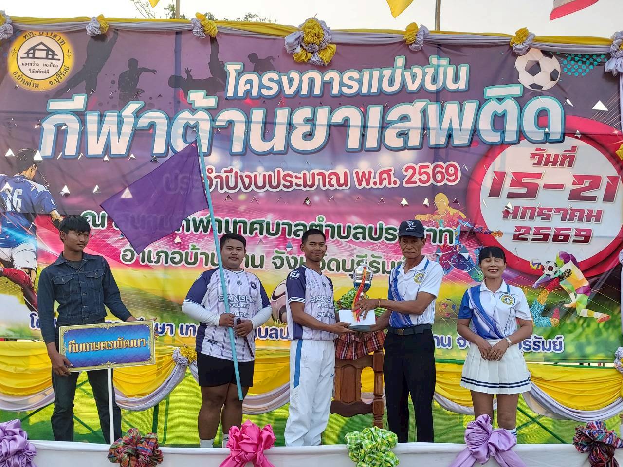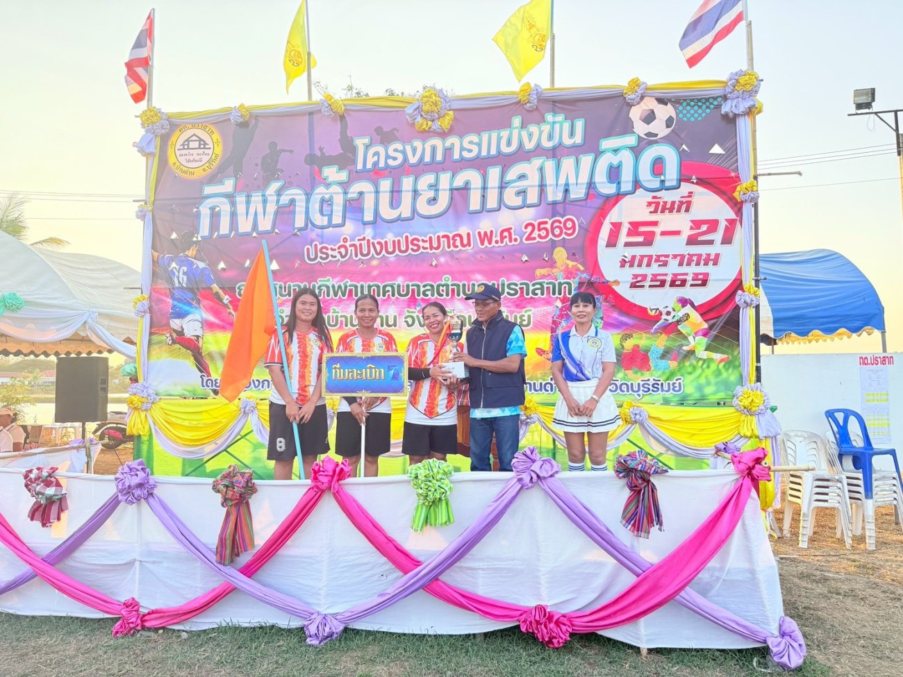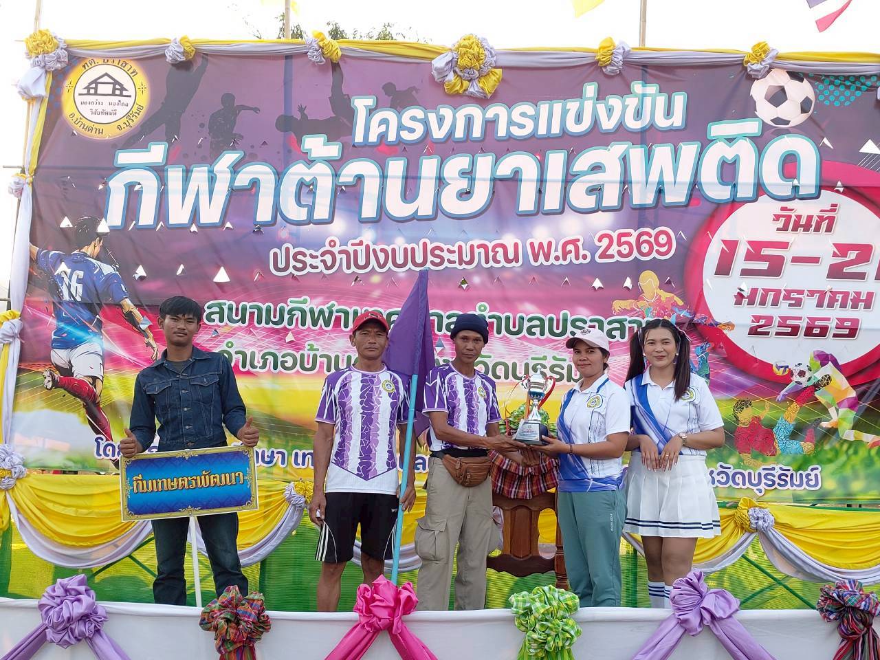 เมื่อวันที่ 21 มกราคม พ.ศ.2569 นายพนาพัฒน์ ชะลุนรัมย์ นายกเทศมนตรีตำบลปราสาท ประธานจัดการแข่งขันกีฬาต้านยาเสพติดตำบลปราสาท ได้กล่าวรายงานผลการดำเนินการจัดโครงการแข่งขันกีฬาต้านยาเสพติด โดย นายกิตติวัฒน์ ปิติเรืองสิทธิ์ รองปลัดเทศบาล ปฏิบัติราชการแทน ปลัดเทศบาลตำบลปราสาท พร้อมด้วยคณะผู้บริหาร สมาชิกสภาเทศบาล หัวหน้าส่วนราชการ พนักงานเทศบาลตำบลปราสาท กำนัน ผู้ใหญ่บ้าน ทั้ง 18 หมู่บ้าน และนักกีฬาตำบลปราสาท ให้เกียรติร่วมพิธีปิด "โครงการแข่งขันกีฬาต้านยาเสพติดตำบลปราสาท ประจำปีงบประมาณ 2569 ในการแข่งขันกีฬาต้านยาเสพติดตำบลปราสาท ประจำปีงบประมาณ 2569 นี้ ในระหว่างวันที่ 15-21 มกราคม 2569 ณ สนามกีฬาเทศบาลตำบลปราสาท อำเภอบ้านด่าน จังหวัดบุรีรัมย์ ซึ่งได้ดำเนินการจัดการแข่งขันเสร็จสิ้นเป็นที่เรียบร้อย และเป็นไปตามวัตถุประประสงค์ทุกประการ