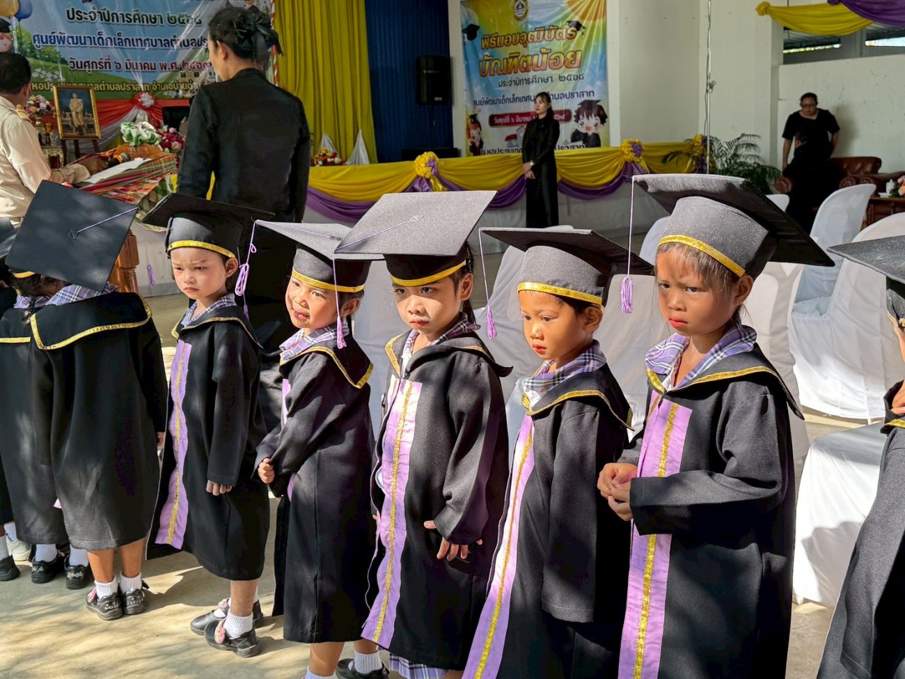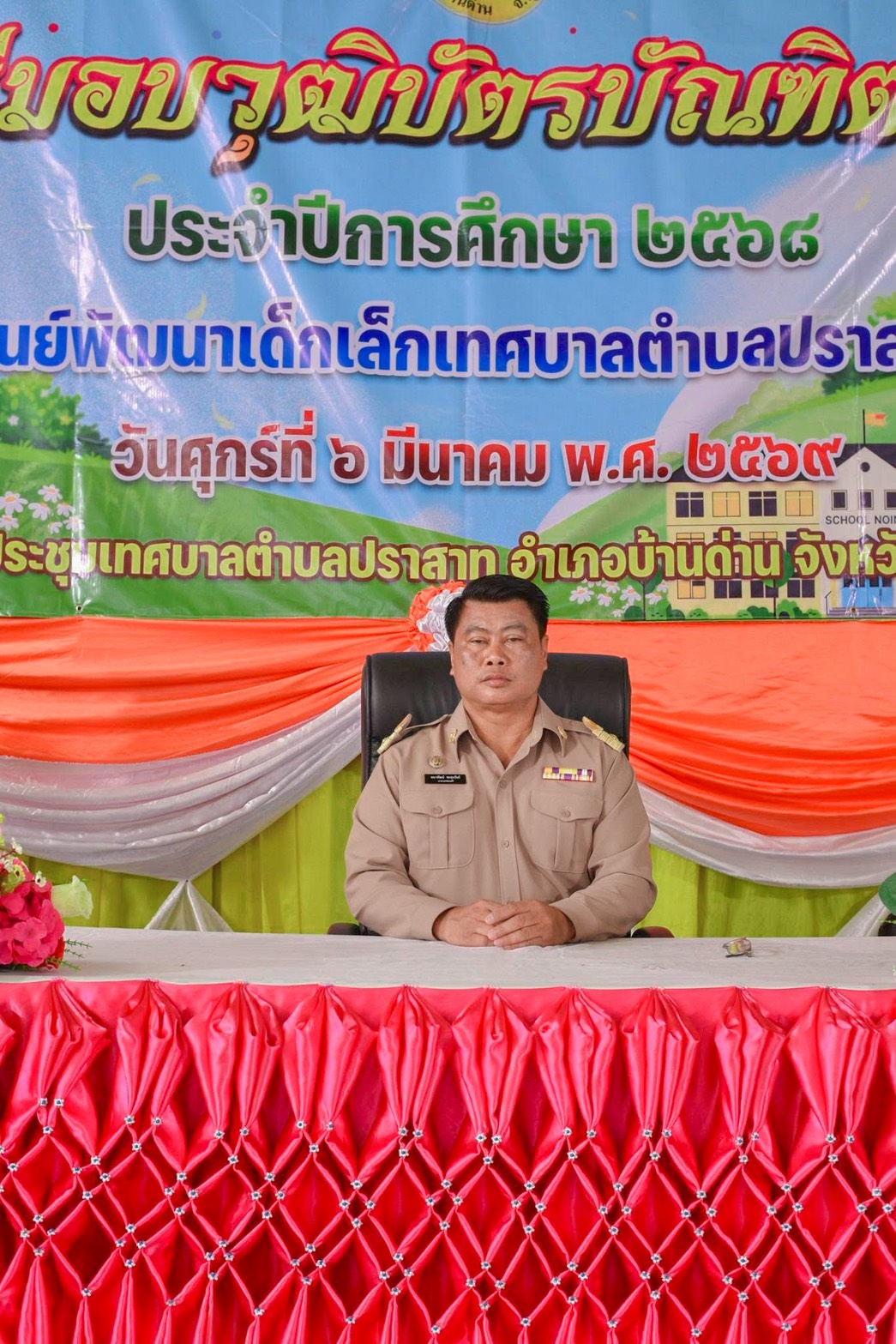 ภาพที่เกี่ยวข้อง เมื่อวันที่ 6 เดือนมีนาคม พ.ศ.2569 นายพนาพัฒน์ ชะลุนรัมย์ นายกเทศมนตรีตำบลปราสาท พร้อมด้วยคณะผู้บริหาร สมาชิกสภา หัวหน้าส่วนราชการ และพนักงานเทศบาลตำบลปราสาท พิธีมอบวุฒิบัตรบัณฑิตน้อย ศูนย์อบรมเด็กก่อนเกณฑ์วัดบ้านปราสาท และศูนย์พัฒนาเด็กเล็กบ้านมะขามป้อม ประจำปีการศึกษา 2568 ขอแสดงความยินดี กับบัณฑิตน้อยทุกคนที่สำเร็จการศึกษาในระดับปฐมวัย ซึ่งเปรียบเสมือนเป็นบันไดอีกขั้นสู่ความสำเร็จในการศึกษาของเด็กๆ จากนี้ขอให้เด็กๆ จงภูมิใจและตั้งใจในการศึกษาเล่าเรียนในระดับชั้นประถมศึกษาอย่างมีความสุข