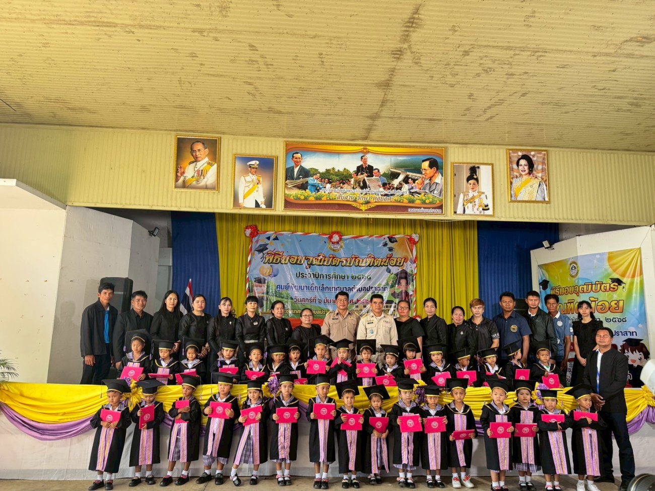 เมื่อวันที่ 6 เดือนมีนาคม พ.ศ.2569 นายพนาพัฒน์ ชะลุนรัมย์ นายกเทศมนตรีตำบลปราสาท พร้อมด้วยคณะผู้บริหาร สมาชิกสภา หัวหน้าส่วนราชการ และพนักงานเทศบาลตำบลปราสาท พิธีมอบวุฒิบัตรบัณฑิตน้อย ศูนย์อบรมเด็กก่อนเกณฑ์วัดบ้านปราสาท และศูนย์พัฒนาเด็กเล็กบ้านมะขามป้อม ประจำปีการศึกษา 2568 ขอแสดงความยินดี กับบัณฑิตน้อยทุกคนที่สำเร็จการศึกษาในระดับปฐมวัย ซึ่งเปรียบเสมือนเป็นบันไดอีกขั้นสู่ความสำเร็จในการศึกษาของเด็กๆ จากนี้ขอให้เด็กๆ จงภูมิใจและตั้งใจในการศึกษาเล่าเรียนในระดับชั้นประถมศึกษาอย่างมีความสุข