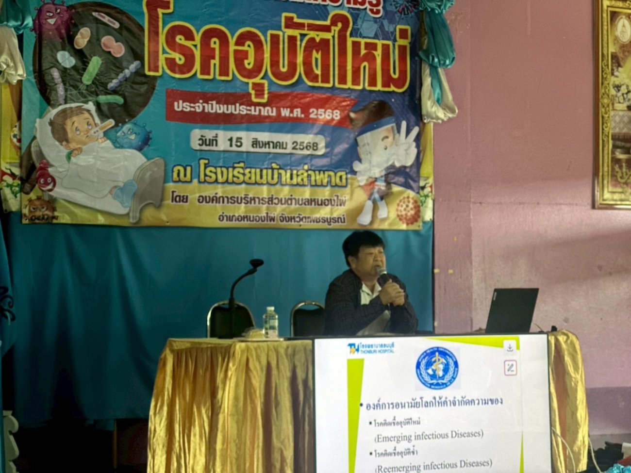เมื่อวันที่ 15 สิงหาคม 2568 องค์การบริหารส่วนตำบลหนองไผ่ ได้จัดโครงการอบรมให้ความรู้โรคอุบัติใหม่ ประจำปีงบประมาณ พ.ศ.2568 โดยมีนายอนณ พิทยชัย นายกองค์การบริหารส่วนตำบลหนองไผ่ เป็นประธานกล่าวเปิดโครงการ เพื่อให้ผู้เข้าร่วมโครงการมีความรู้ความเข้าใจเกี่ยวกับโรคอุบัติใหม่-อุบัติซ้ำ และมาตรการในการป้องกันควบคุมโรคในพื้นที่ โดยมีกิจกรรม อบรมให้ความรู้ กับครูและนักเรียนโรงเรียนบ้านลำพาด ตำบลหนองไผ่ อำเภอหนองไผ่ จังหวัดเพชรบูรณ์