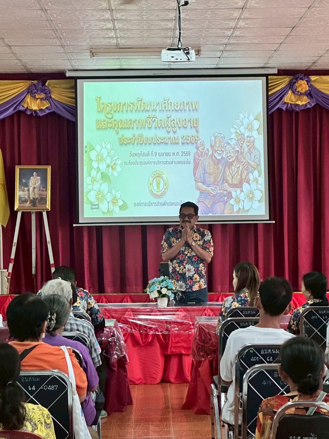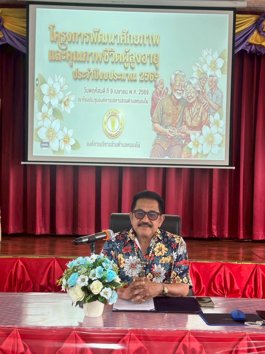 วันพฤหัสบดีที่ 9 เมษายน 2569 นายอนณ พิทยชัย นายกองค์การบริหารส่วนตำบลหนองไผ่ เป็นประธานเปิดโครงการพัฒนาศักยภาพและคุณภาพชีวิตผู้สูงอายุ ประจำปี 2569 ณ.ห้องประชุมองค์การบริหารส่วนตำบลหนองไผ่ วัตถุประสงค์เพื่อให้ผู้สูงอายุมีความรู้ในการดูแลตัวเองด้านสุขภาพและการดำเนินชีวิตอย่างไรให้มีความสุข กลุ่มเป้าหมายผู้สูงอายุและจนท.อบต.หนองไผ่ จำนวน 110 คน